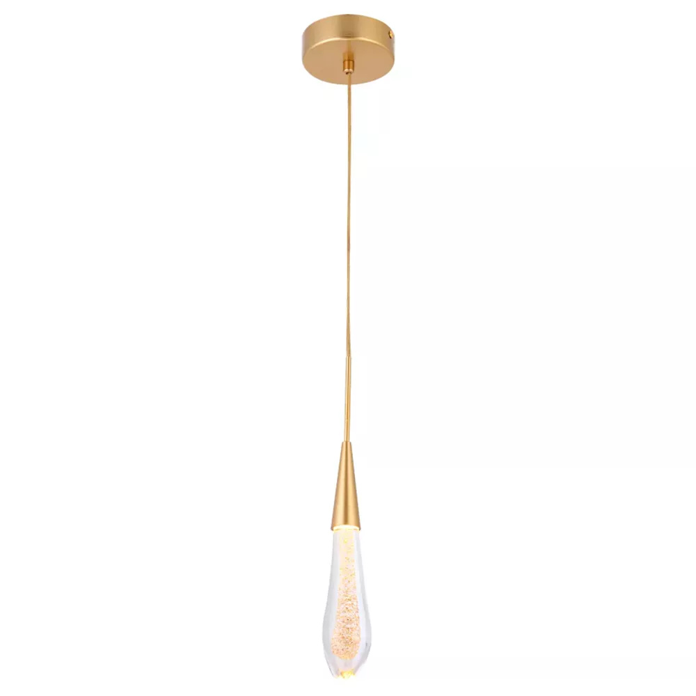 Pendente LED Leah 3000K 3W Bivolt Ø5,5x33cm Vidro e Alumínio Dourado – Nordecor 2409