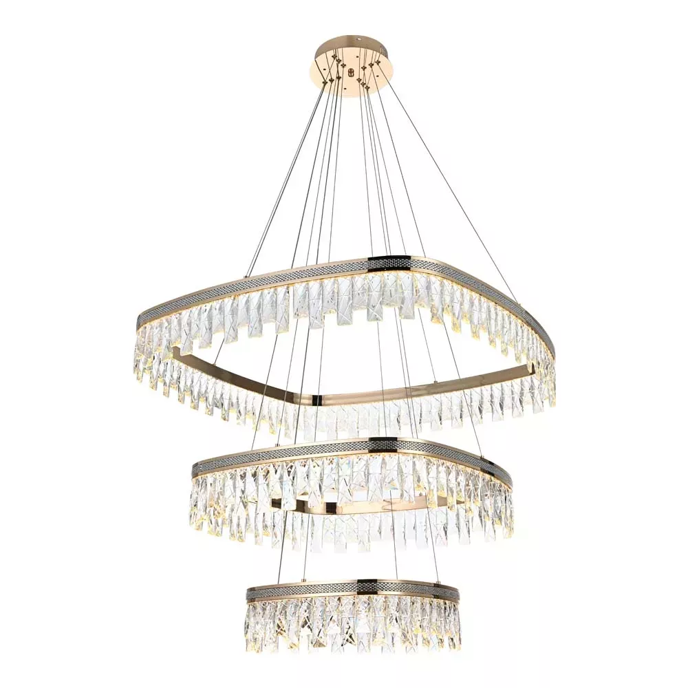 Pendente LED Stenna 3 3000K 88W Bivolt Ø80cm Alumínio, Metal e Vidro Ouro – Nordecor 2897